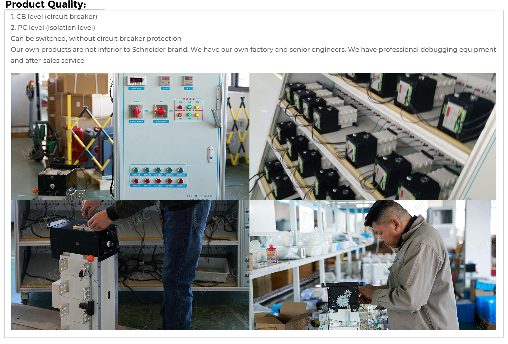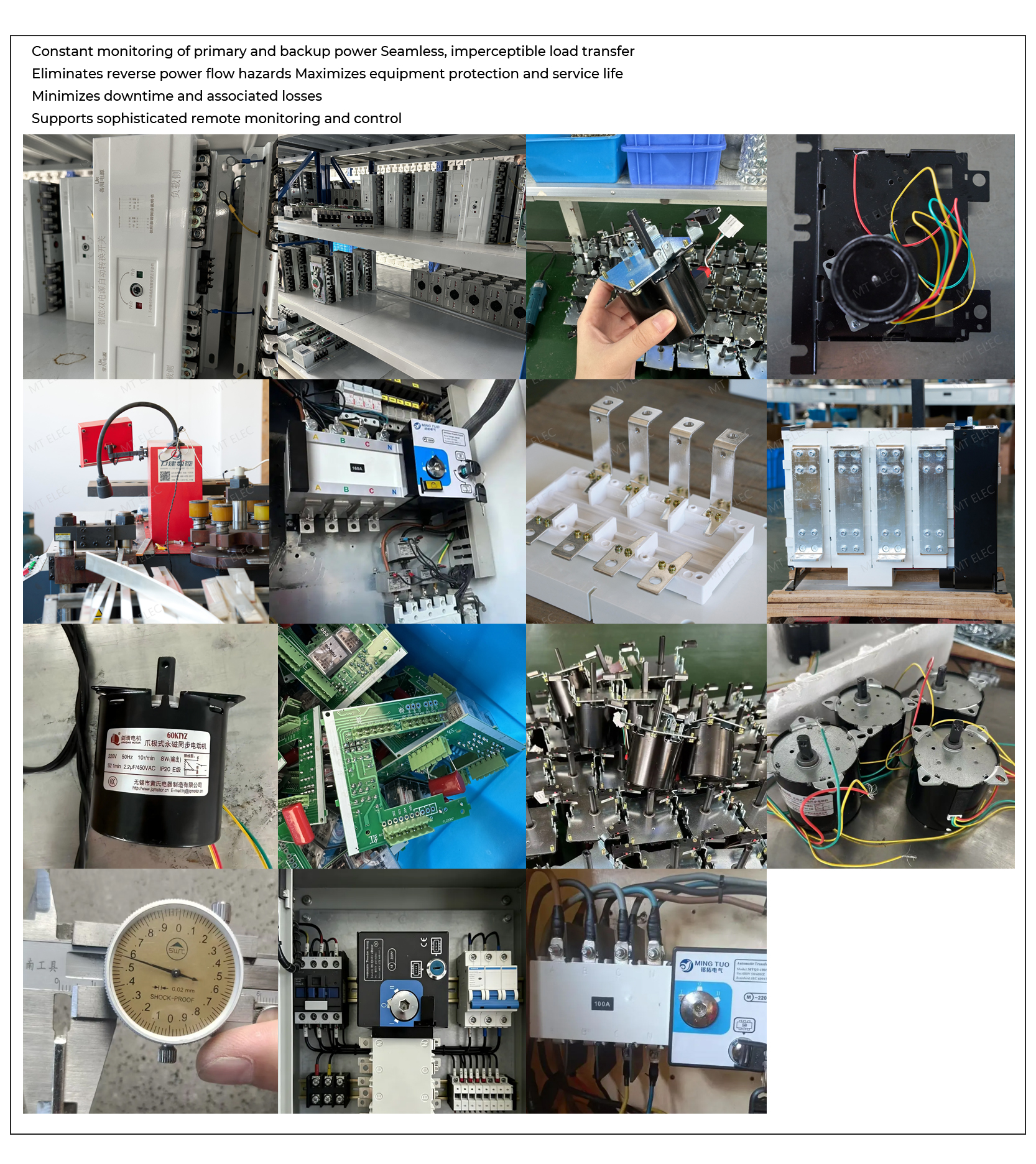 El MINGTUO ATS (interruptor de transferencia automática) garantiza energía ininterrumpida transfiriendo de manera inteligente y automática cargas eléctricas entre fuentes de energía primarias y de respaldo. Diseñado con una construcción mecánica robusta y un sistema de control avanzado, ofrece una conmutación perfecta para operaciones críticas en infraestructuras industriales, comerciales y públicas.
