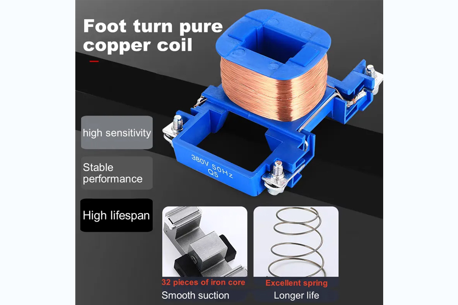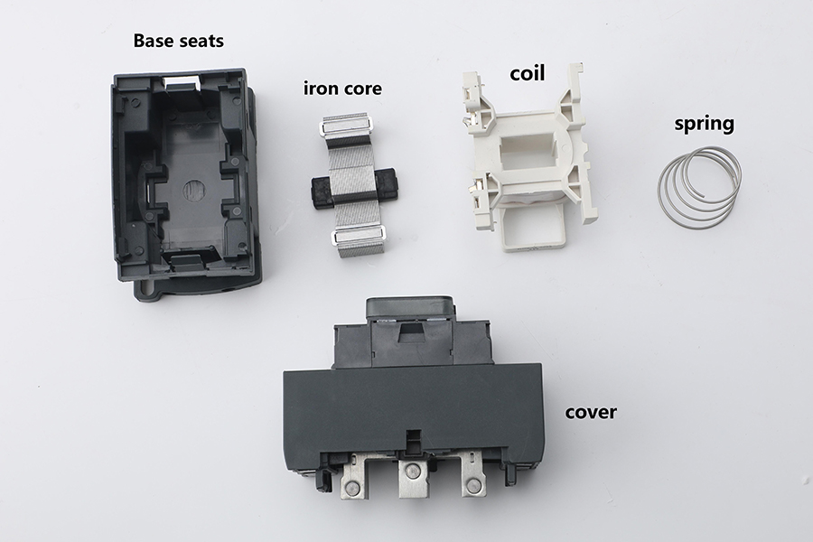 Cuando se activa el contactor de CA, la bobina interna genera un campo magnético, lo que hace que el núcleo de hierro en movimiento y el núcleo de hierro estacionario se atraigan entre sí. Este movimiento impulsa el sistema de contactos para acoplarse con los contactos estacionarios, completando el circuito. Cuando se desenergiza la bobina, la fuerza de atracción desaparece y el resorte de reinicio levanta el núcleo de hierro en movimiento, separando los contactos y rompiendo el circuito.