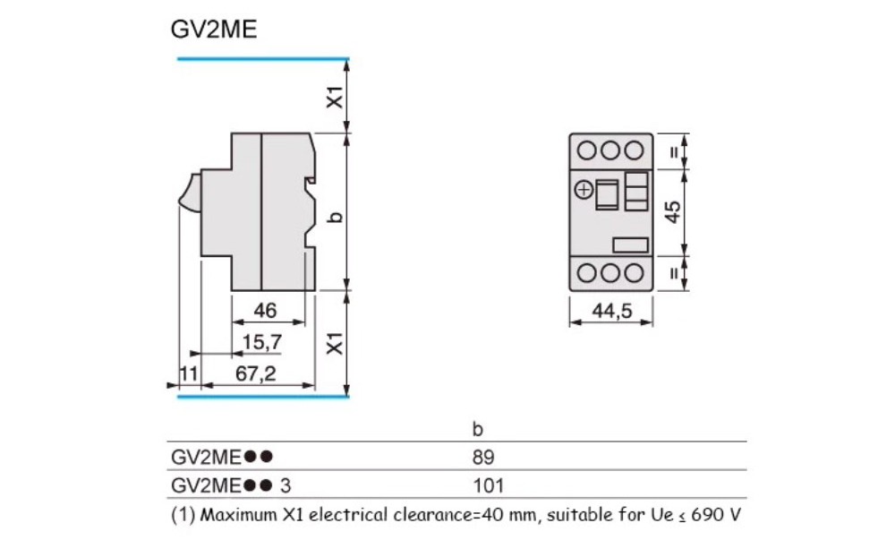 | GV2-ME01C | 0,1A~0,16A | 1,5A | Conjunto montado lateralmente: GV-AE1 |