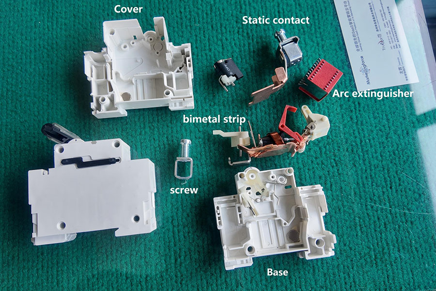 Cuando se sobrecarga, el doble metal se doblará y deformará cuando se caliente. Cuando el grado de flexión alcanza un cierto valor, se empujará el pestillo mecánico para liberar el mecanismo operativo, lo que provocará que los contactos del disyuntor se separen y corten el circuito para lograr protección contra sobrecarga.