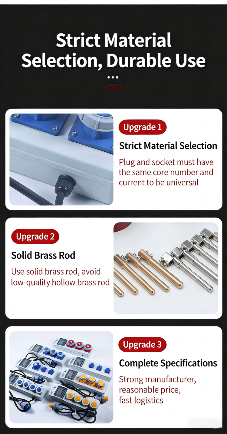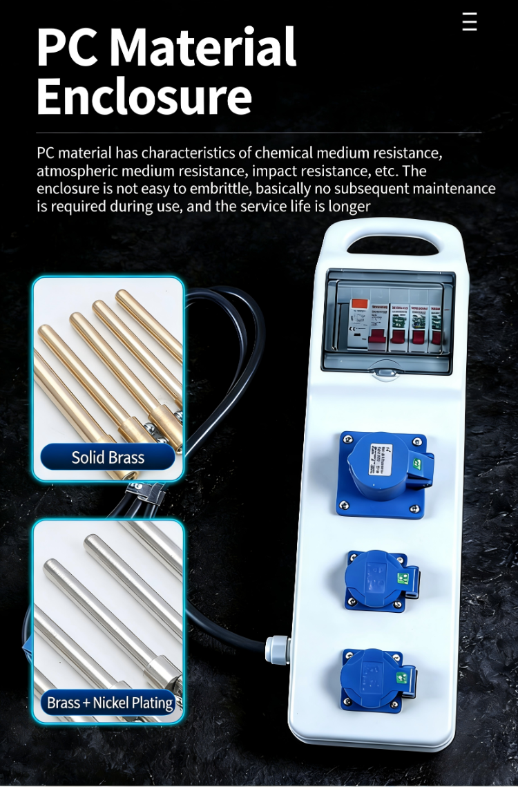 Las cajas de enchufes impermeables para exteriores se utilizan en sitios de construcción al aire libre, fábricas y lugares con altos requisitos de sellado, impermeabilización y prevención de polvo. Pueden proporcionar energía temporal a las cargas en el sitio de construcción, lo que lo hace conveniente y portátil. Son equivalentes a una fuente de energía móvil y pueden generar electricidad trifásica y bifásica. Se pueden personalizar para proporcionar diversas fuentes de energía y tomas de corriente en varios estilos y formas según las necesidades reales del sitio de construcción.